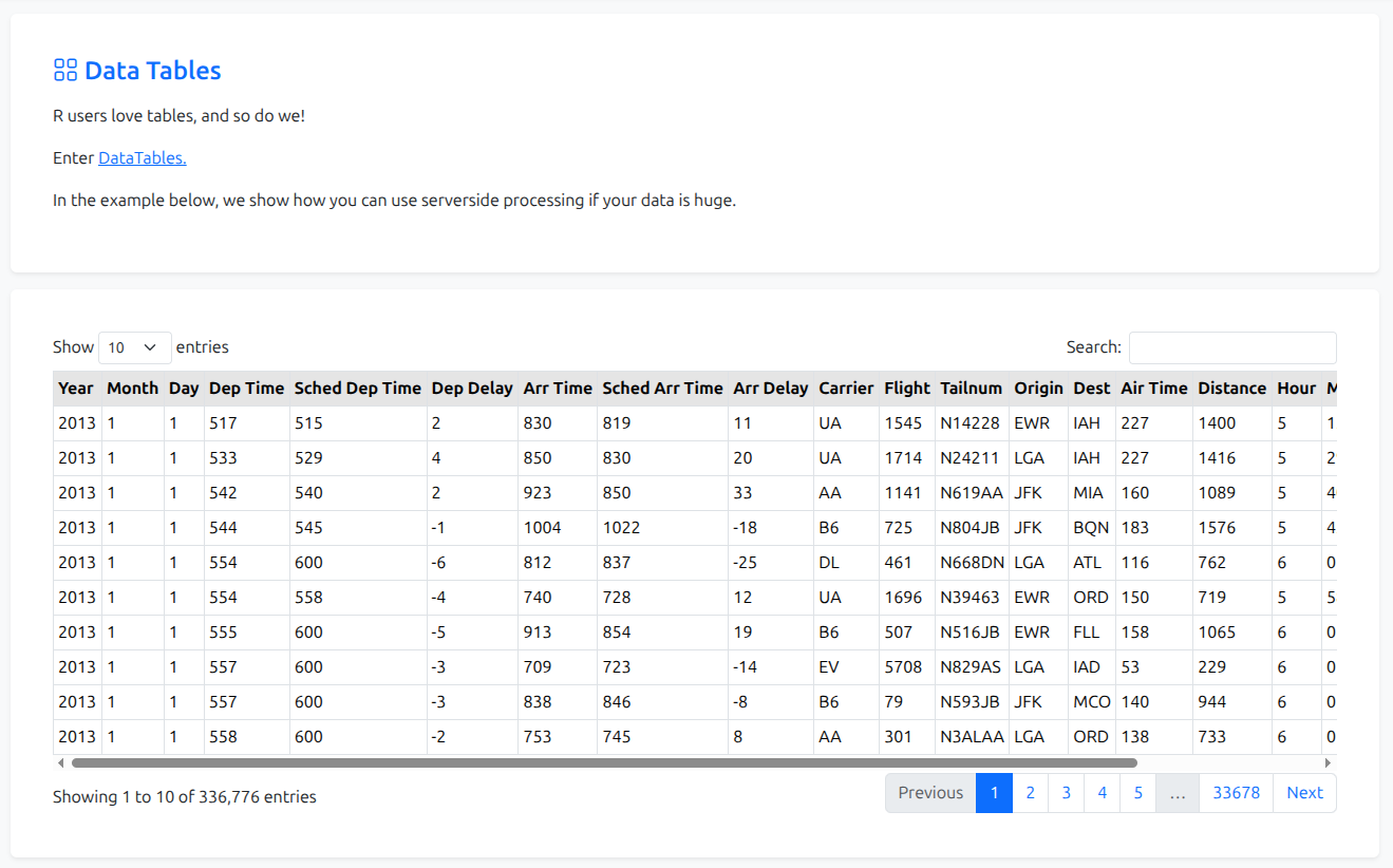 Render datatables, paginate & query data