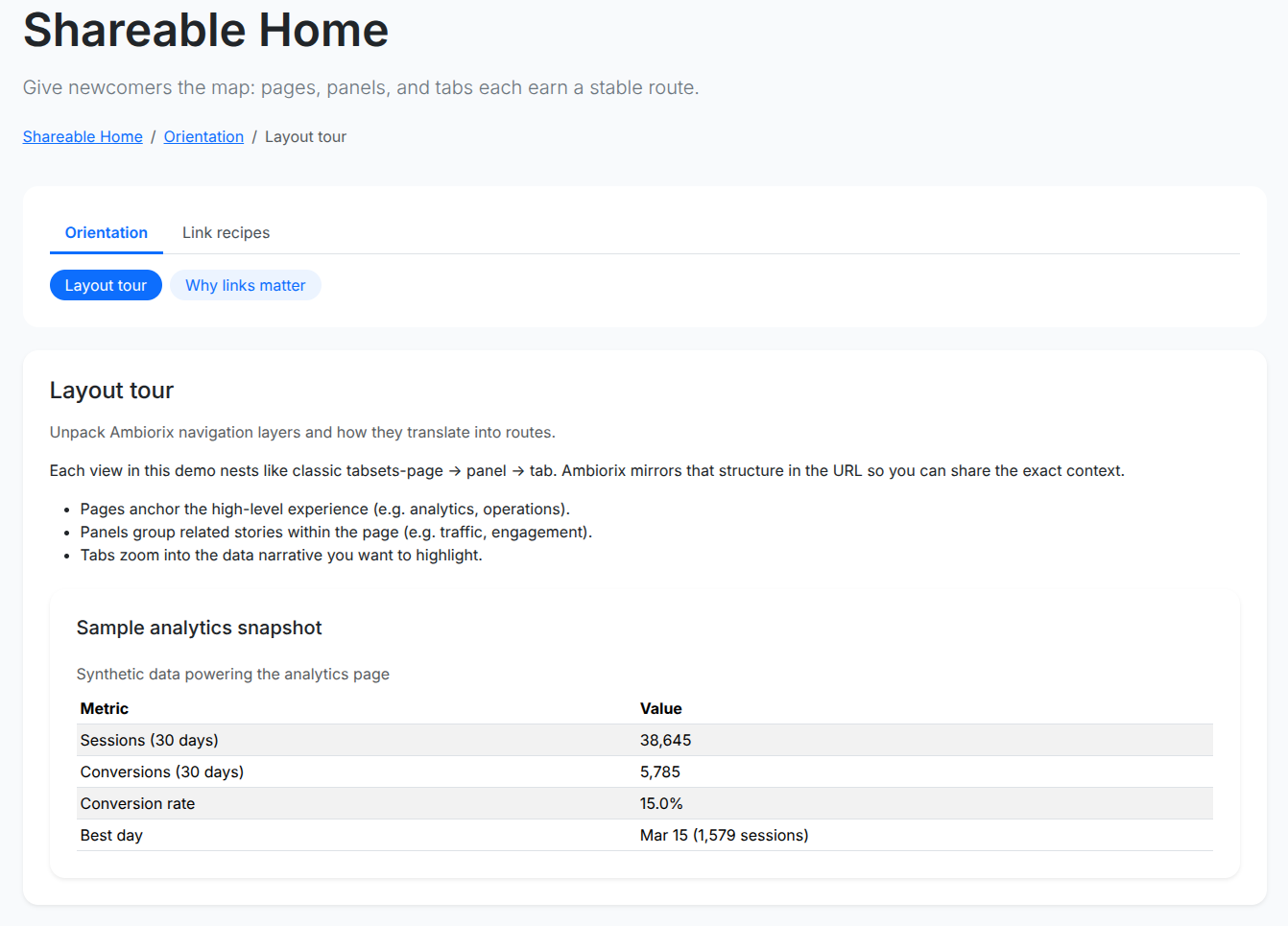 Enable users to share links to specific pages, tabs, & sections